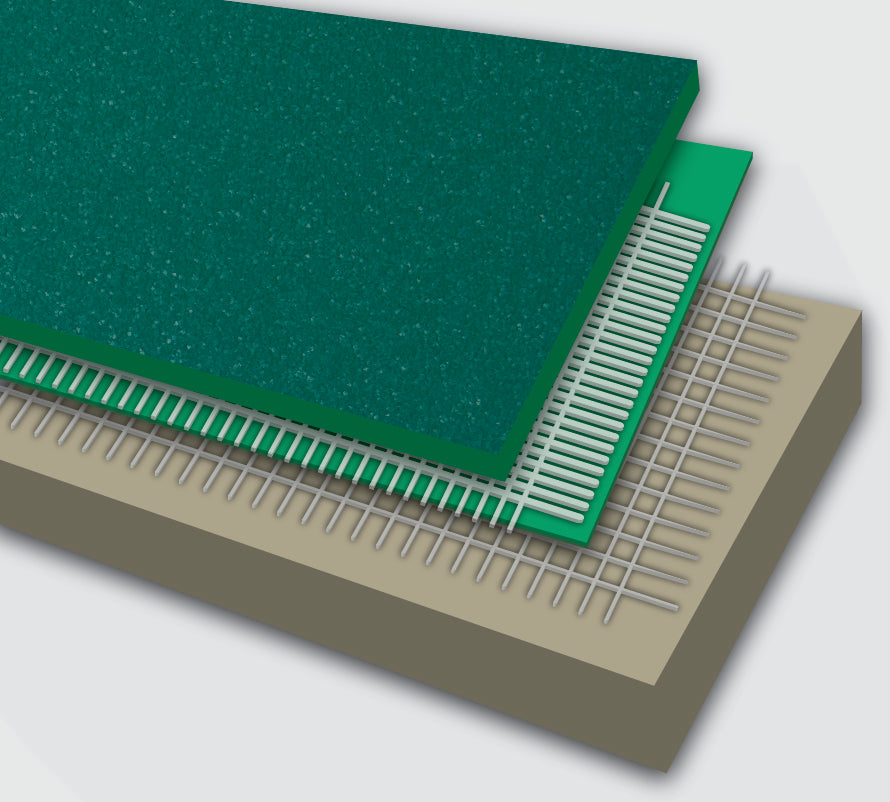 2. Schaumstoffschicht mit Polymerisationsgrad; 3mm dick für gute Rüclprall- und Stoßdämpfung