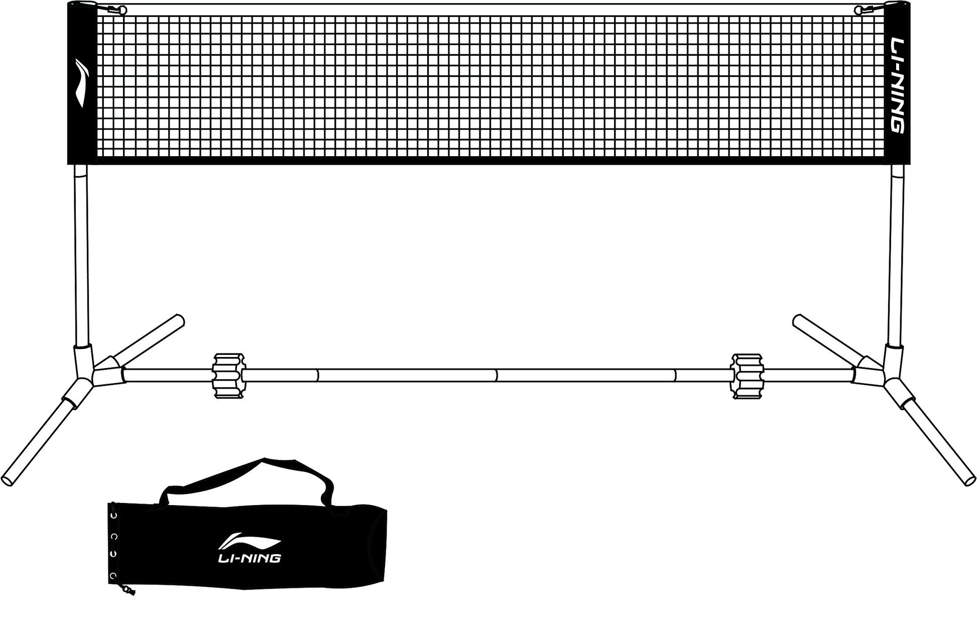 Mobiles Li-Ning Badmintonnetz mit Netzständern für ein Spielfeld