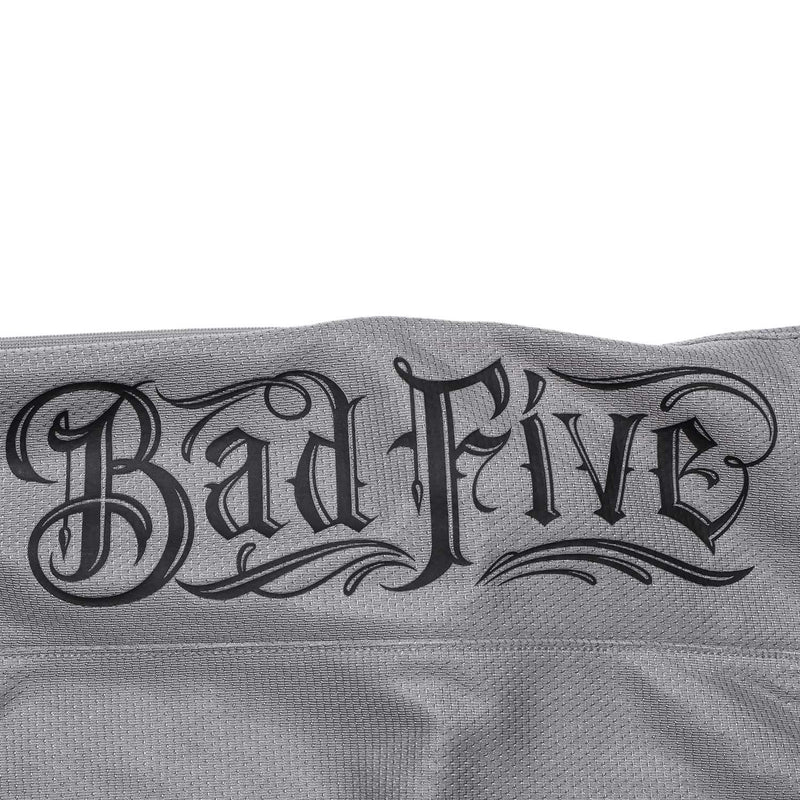 Design mit großem BADFIVE -Schriftzug auf der linken Seite und "Mitchell & Ness" auf der rechten Seite